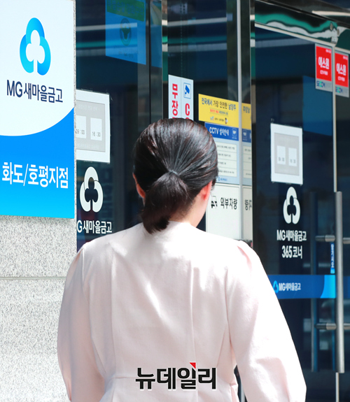 600억원 대 부실채권이 발생해 인근 새마을금고로 흡수합병 예정인 경기 남양주시 MG새마을금고 화도호평지점으로 7일 오후 고객이 지점을 방문하고 있다.