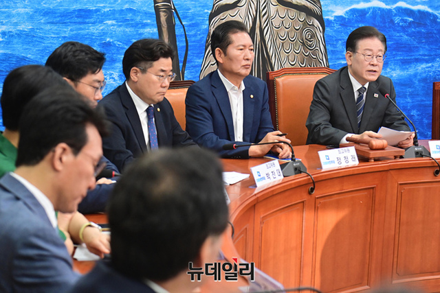 이재명 더불어민주당 대표가 10일 오전 국회에서 열린 최고위원회의에서 모두발언을 하고 있다.