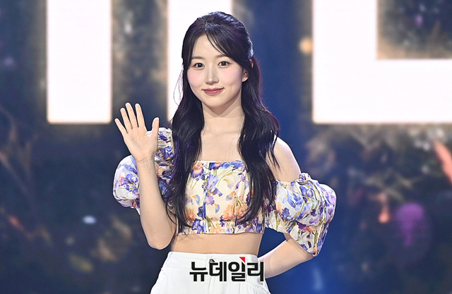 걸그룹 엔믹스(NMIXX) 해원이 11일 오후 서울 용산구 블루스퀘어에서 열린 싱글 3집 'A Midsummer NMIXX's Dream' 발매기념 쇼케이스에서 포토타임을 갖고 있다.