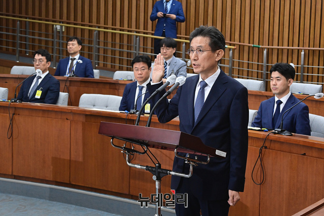 서경환 대법관 후보자가 12일 오전 국회에서 열린 인사청문회에 출석해 선서를 하고 있다.