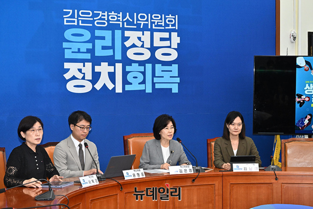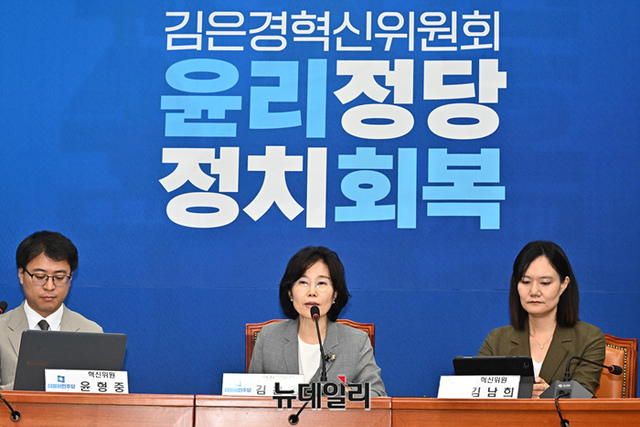 김은경 더불어민주당 혁신위원장이 12일 오후 국회에서 열린 기자간담회에서 발언을 하고 있다.