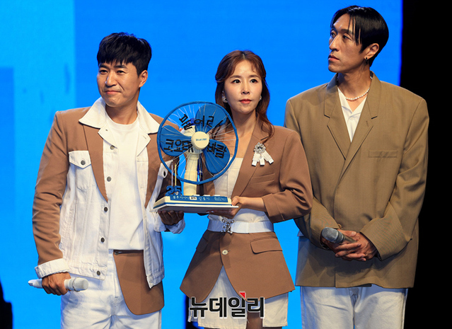 [포토] 작곡팀 아크로펀치에 선풍기 선물 받은 코요태