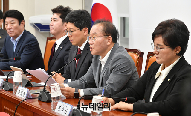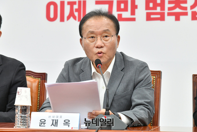 윤재옥 국민의힘 원내대표가 13일 오전 국회에서 열린 최고위원회의에 참석해 모두발언을 하고 있다.