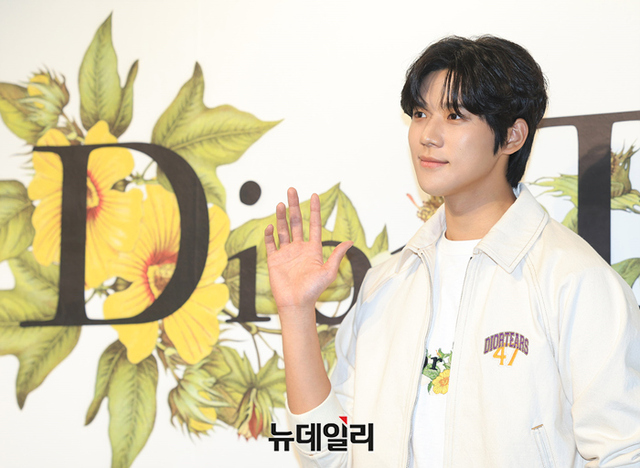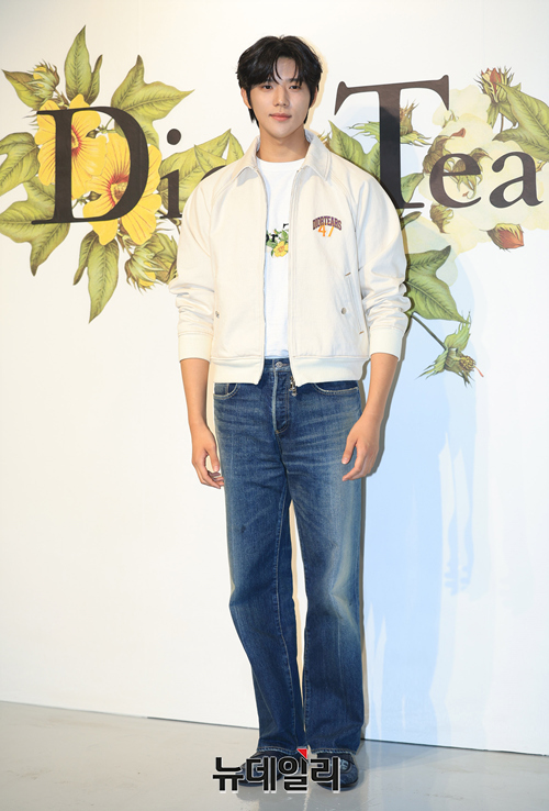 배우 문상민이 13일 오후 서울 성동구 베이직스튜디오에서 열린 '디올 티얼즈 컬렉션' 출시행사에서 포즈를 취하고 있다. '디올 티얼즈 컬렉션'은 킴 존스와 게스트 디자이너 데님 티어즈 콜라보레이션 맨즈 브랜드다.