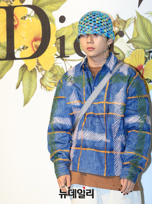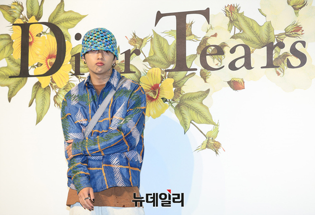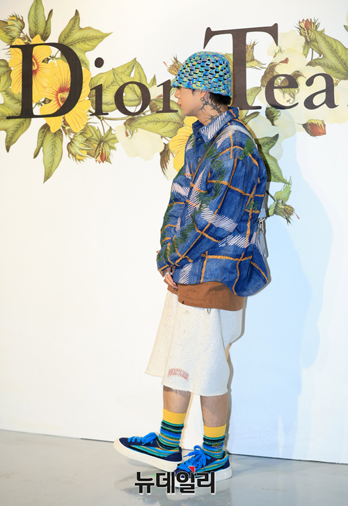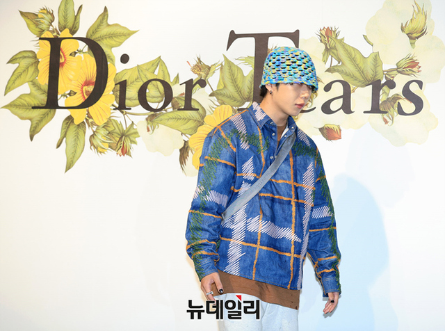 래퍼 우원재가 13일 오후 서울 성동구 베이직스튜디오에서 열린 '디올 티얼즈 컬렉션' 출시행사에서 포즈를 취하고 있다. '디올 티얼즈 컬렉션'은 킴 존스와 게스트 디자이너 데님 티어즈 콜라보레이션 맨즈 브랜드다.