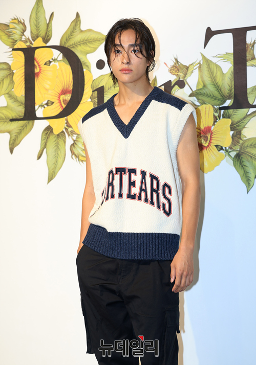 모델 홍태준이 13일 오후 서울 성동구 베이직스튜디오에서 열린 '디올 티얼즈 컬렉션' 출시행사에서 포즈를 취하고 있다. '디올 티얼즈 컬렉션'은 킴 존스와 게스트 디자이너 데님 티어즈 콜라보레이션 맨즈 브랜드다.