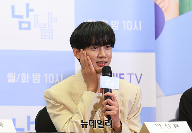 배우 박성훈이 17일 오전 서울 마포구 스탠포드호텔에서 열린 지니 TV 오리지널 '남남(연출 이민우)' 제작보고회에서 질문에 답하고 있다.