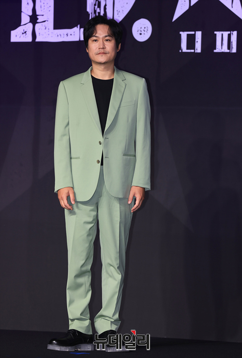 배우 김성균이 18일 오전 서울 강남구 그랜드 인터컨티넨탈 서울 파르나스에서 열린 넷플릭스 시리즈 'D.P. 시즌2(연출 한준희)' 제작보고회에서 포토타임을 갖고 있다.