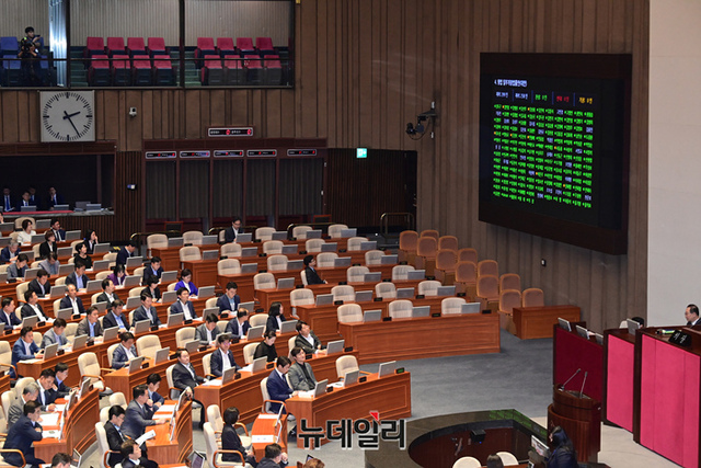 영아 살해·유기범을 최대 사형에 처하도록 처벌을 강화하는 내용의 형법 개정안이 18일 오후 국회에서 열린 본회의를 통과하고 있다.