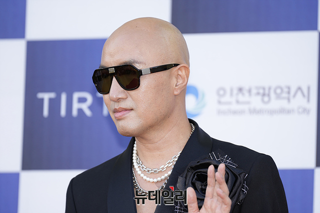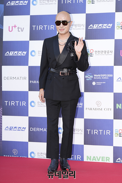 방송인 홍석천이 19일 오후 인천 중구 파라다이스시티에서 열린 '제2회 청룡 시리즈 어워즈' 레드카펫 행사에서 포즈를 취하고 있다.