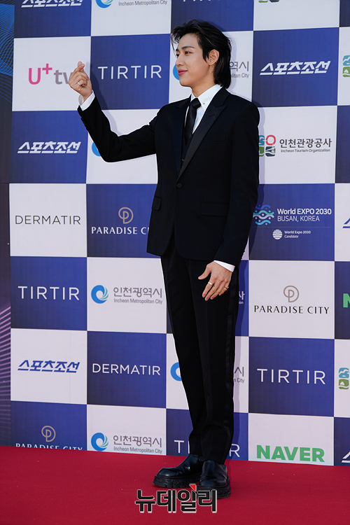 GOT7 뱀뱀이 19일 오후 인천 중구 파라다이스시티에서 열린 '제2회 청룡시리즈어워즈' 레드카펫 행사에서 포즈를 취하고 있다.