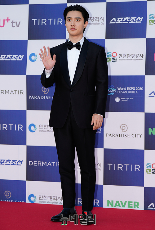 EXO 도경수가 19일 오후 인천 중구 파라다이스시티에서 열린 '제2회 청룡시리즈어워즈' 레드카펫 행사에서 포즈를 취하고 있다.