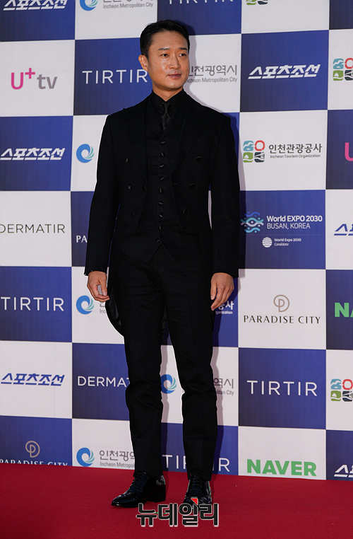 배우 조우진이 19일 오후 인천 중구 파라다이스시티에서 열린 '제2회 청룡시리즈어워즈' 레드카펫 행사에서 포즈를 취하고 있다.