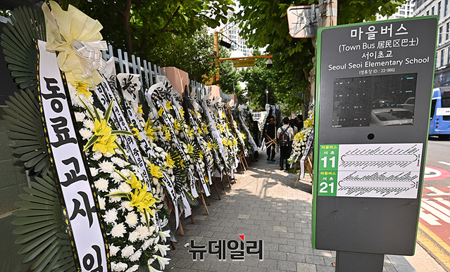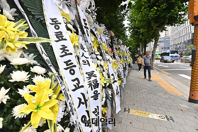 [포토] 서이초교 앞 뒤덮은 근조화환