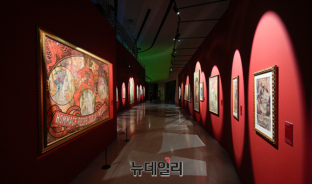 프라하 오리지널 몰입형 멀티미디어 전시 '알폰스 무하 이모션' 프레스콜이 21일 오전 서울 동대문디자인플라자에서 진행되고 있다.'알폰스 무하 이모션'은 아르누보 스타일의 대가인 알폰스 무하의 작품을 디지털화해 현대적인 감각으로 재현하는 글로벌 브랜드 아이무하 프로젝트(iMUCHA PROJECT)다. 연출가 미칼 드보르작과 알폰스 무하의 작품을 소장하고 있는 리처드 푸사 재단이 공동제작해 미디어아트와 작품 전시 두 가지의 구성으로 이루어져있다.아시아 최초로 국내에서 선보이는 '알폰스 무하 이모션'은 22일부터 10월 30일까지 동대문디자인플라자에서 만나볼 수 있다.