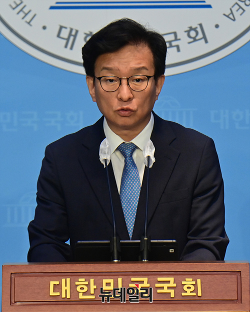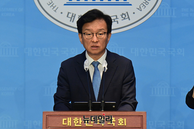 권칠승 더불어민주당 수석대변인이 21일 오전 국회 소통관에서 브리핑을 하고 있다.