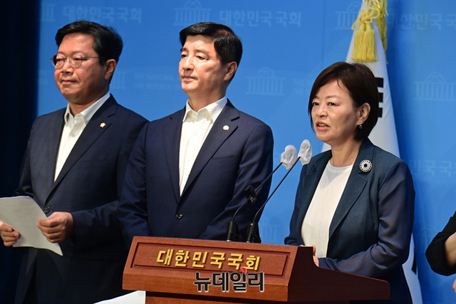 더불어민주당 이상민 행정안전부 장관 탄핵심판 TF 단장인 진선미 민주당 의원이 21일 국회 소통관에서 기자회견을 갖고 이상민 행정안전부 장관에 대한 파면을 촉구하고 있다.