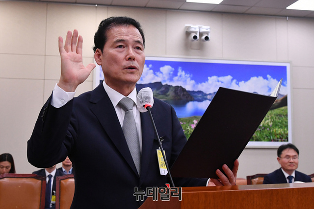 김영호 통일부 장관 후보자가 21일 오후 국회 외교통일위원회 전체회의에서 열린 인사청문회에 출석해 선서를 하고 있다.