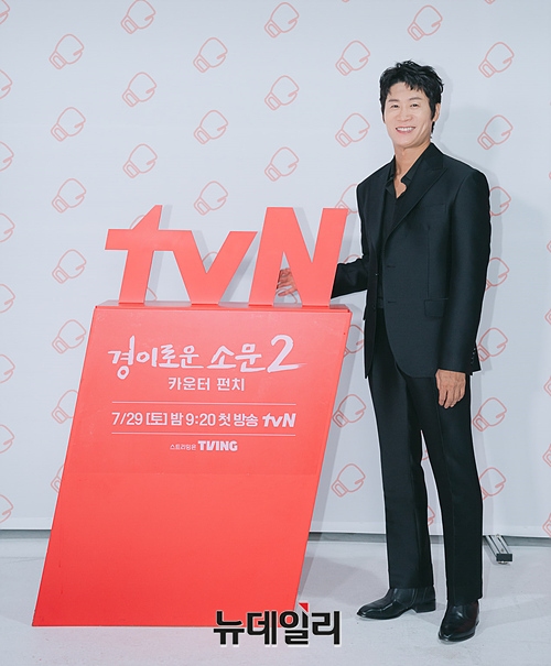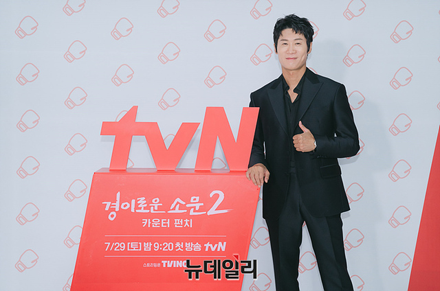 배우 진선규가 21일 오후 온라인으로 열린 tvN 새 토일드라마 '경이로운 소문2(연출 유선동)' 제작발표회에서 포즈를 취하고 있다.