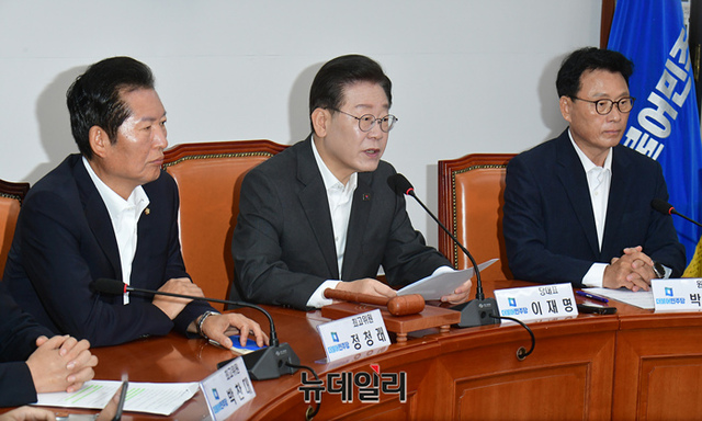 이재명 더불어민주당 대표가 23일 오전 국회에서 열린 최고위원회의에서 모두발언을 하고 있다.