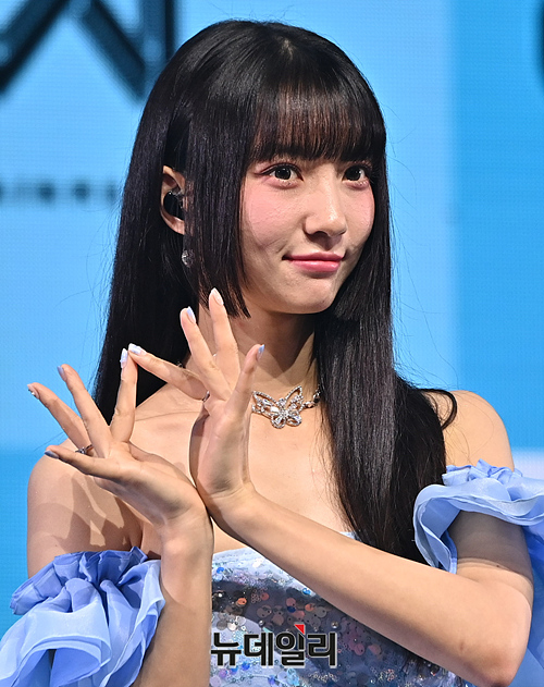 오마이걸 유빈이 24일 오후 서울 광진구 예스24 라이브홀에서 열린 미니9집 미디어 쇼케이스에서 포토타임을 갖고 있다.