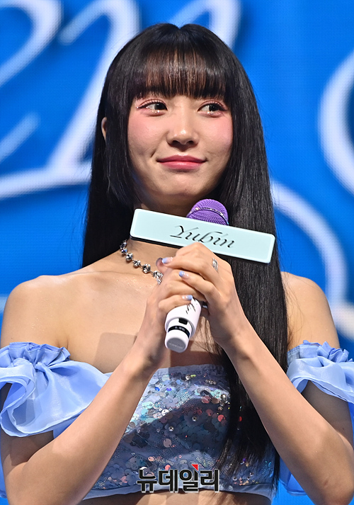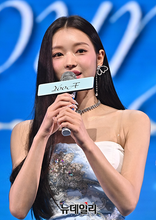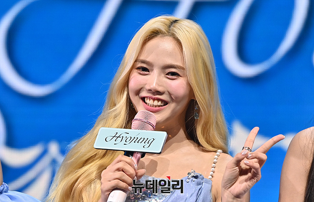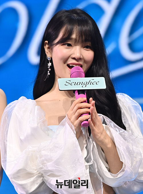 오마이걸(OH MY GIRL)이 24일 오후 서울 광진구 예스24 라이브홀에서 열린 미니9집 미디어 쇼케이스에서 컴백 소감을 발표하고 있다.