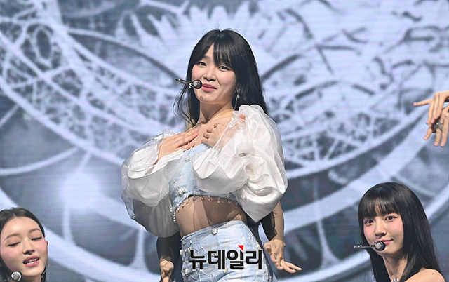 오마이걸(OH MY GIRL)이 24일 오후 서울 광진구 예스24 라이브홀에서 열린 미니9집 미디어 쇼케이스에서 수록곡 '셀러브레이트(Celebrate)' 무대를 선보이고 있다. 음원은 오후6시 공개.