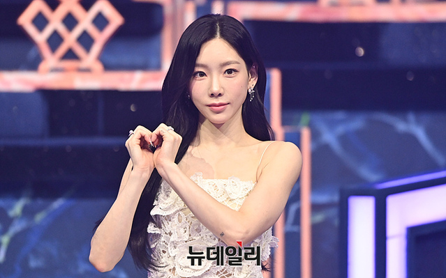 가수 태연이 25일 오후 경기 고양시 일산 CJ ENM 스튜디오에서 진행된 Mnet 퀸덤퍼즐 생방송 전 포토타임에서 포즈를 취하고 있다.