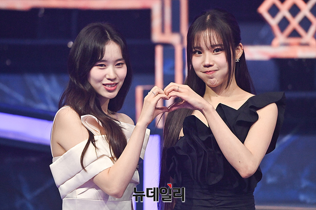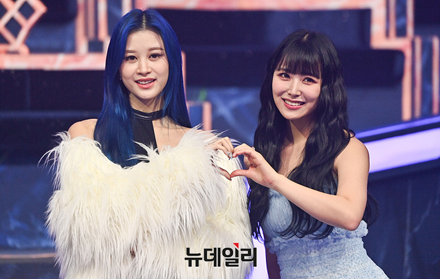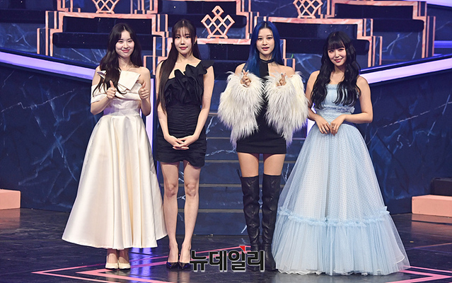 가수 엘리, 주이, 파이, 미루가 25일 오후 경기 고양시 일산 CJ ENM 스튜디오에서 진행된 Mnet 퀸덤퍼즐 생방송 전 포토타임에서 포즈를 취하고 있다.
