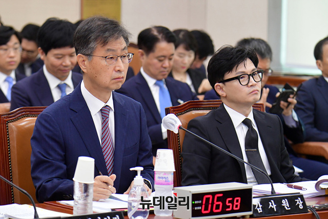 최재해 감사원장이 26일 오전 국회에서 열린 법제사법위원회 전체회의에서 의원들의 질의에 답하고 있다.
