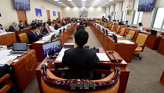 장제원 과학기술정보방송통신위원회 위원장이 26일 국회에서 열린 과방위 전체회의를 주재하고 있는 가운데 야당 의원들의 좌석이 비어 있다.