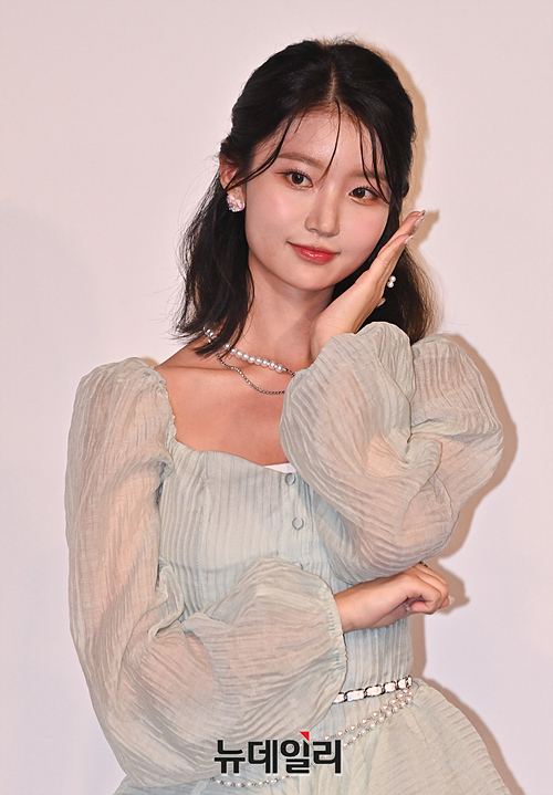 걸그룹 세러데이 주연이 27일 오전 서울 마포구 윤형빈 소극장에서 열린 여섯 번째 싱글앨범 '파인드 서머(Find Summer)' 미디어 쇼케이스에서 포토타임을 갖고 있다.