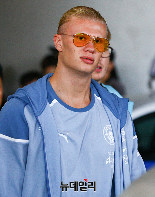 엘링 홀란드(Erling Haaland) 맨체스터 시티 선수가 27일 오후 인천국제공항을 통해 입국하고 있다.