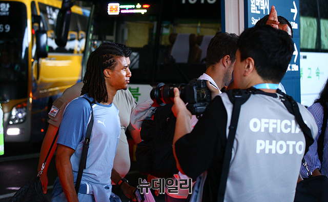 47년만에 방한한 맨채스터 시티가 27일 오후 인천국제공항을 통해 입국하고 있다. 맨시티는 30일 오후8시 서울월드컵경기장에서 아틀레티코 마드리드와 프리시즌 친선경기를 진행한다. (사진=독자제공)
