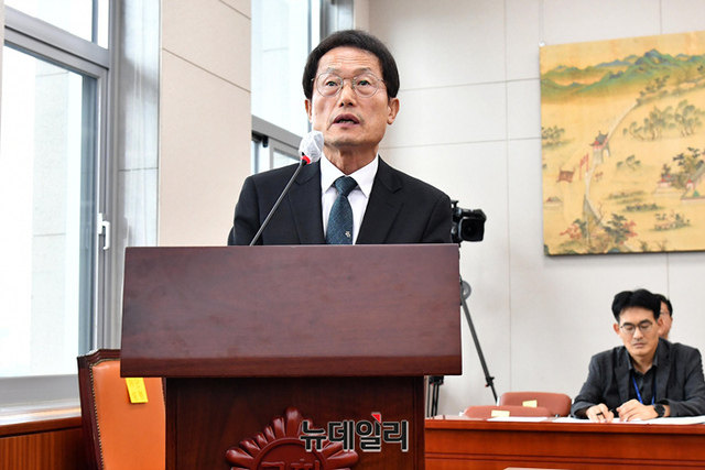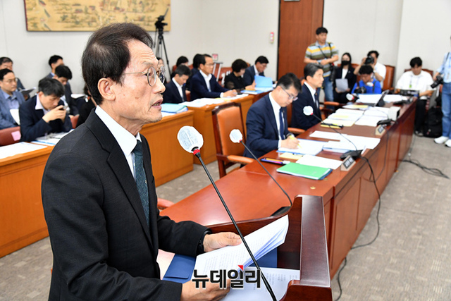 조희연 서울시교육감이 28일 국회에서 열린 교육위원회 전체회의에서 업무보고를 하고 있다.