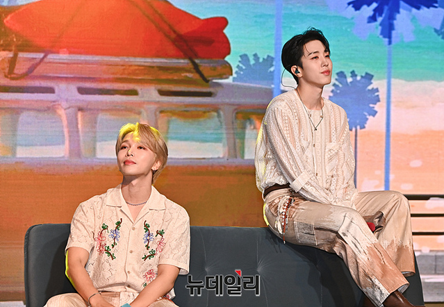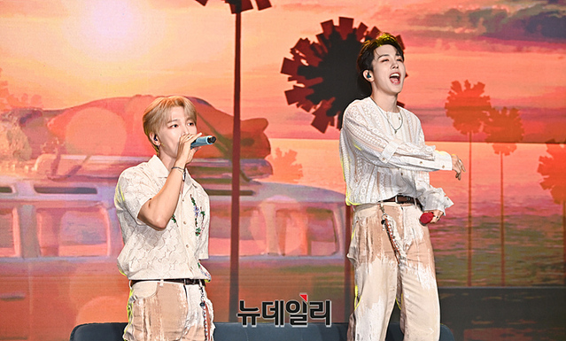 듀오 세븐어스(SEVENUS) 희재와 이레가 31일 오전 서울 강남구 일지아트홀에서 열린 데뷔 쇼케이스에서 '썸머 라이드(Summer Ride)' 무대를 선보이고 있다.세븐어스는 보이그룹 서바이벌 경연 프로그램 피크타임에서 '팀 7시'로 준우승한 것을 계기로 새롭게 결성한 듀오다.첫 번째 싱글앨범 '썸어스(Summús)'는 타이틀곡 '원더랜드(Wonder Land)'를 포함해 '썸머 라이드(Summer Ride)' '인 어 드림(In a Dream)'까지 총 세 곡을 담았다. 음원은 12시 공개.