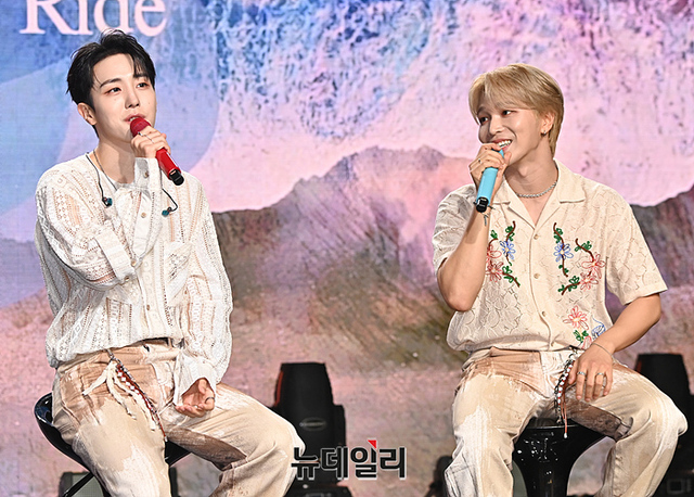 듀오 세븐어스(SEVENUS) 희재와 이레가 31일 오전 서울 강남구 일지아트홀에서 열린 데뷔 쇼케이스에서 앨범을 설명하고 있다.세븐어스는 보이그룹 서바이벌 경연 프로그램 피크타임에서 '팀 7시'로 준우승한 것을 계기로 새롭게 결성한 듀오다.첫 번째 싱글앨범 '썸어스(Summús)'는 타이틀곡 '원더랜드(Wonder Land)'를 포함해 '썸머 라이드(Summer Ride)' '인 어 드림(In a Dream)'까지 총 세 곡을 담았다. 음원은 낮12시 공개.