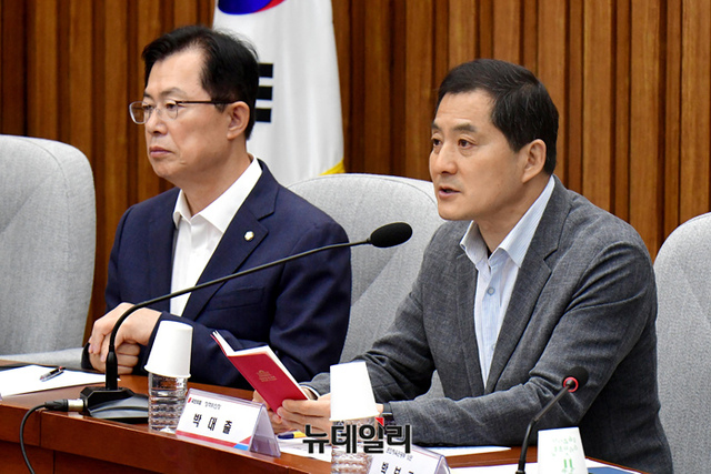 박대출 국민의힘 정책위의장이 31일 오전 국회에서 열린 'K-콘텐츠 불법유통 근절 대책' 민당정 협의회에서 발언을 하고 있다.