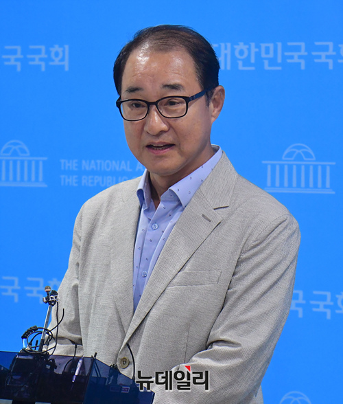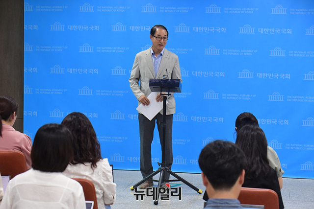 이성만 무소속 의원이 1일 오후 국회 소통관에서 검찰의 영장 재청구에 대한 입장 발표 기자회견을 마치고 기자들의 질문에 답하고 있다.