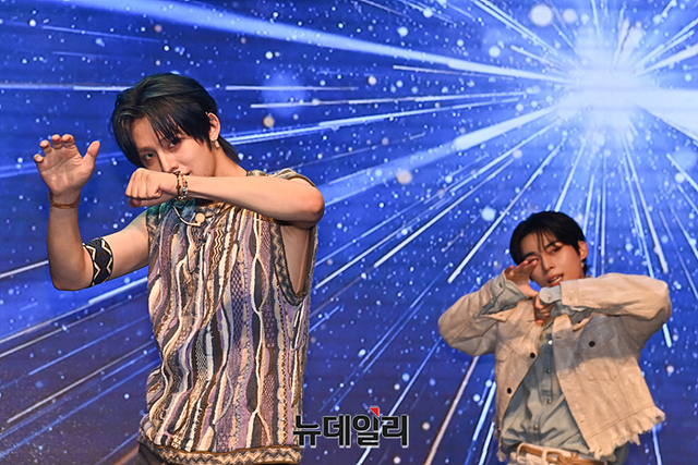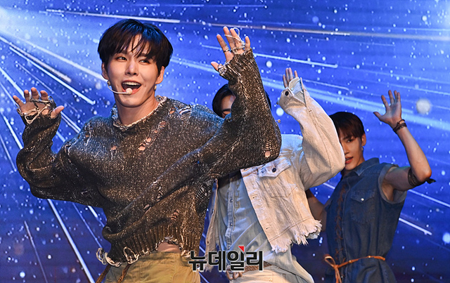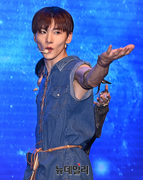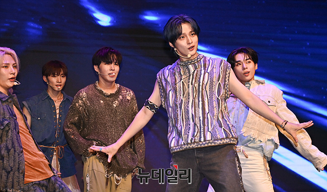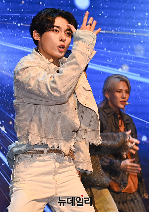 보이그룹 씨드(XEED)가 1일 오후 서울 용산구 대원콘텐츠라이브홀에서 열린 두 번째 미니앨범 '블루(BLUE)' 컴백 쇼케이스에서 무대를 선보이고 있다.