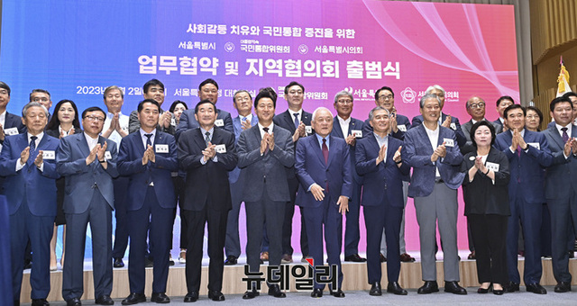 국민통합위원회 서울지역헙의회 출범식이 2일 오전 서울 시청에서 진행되고 있다.