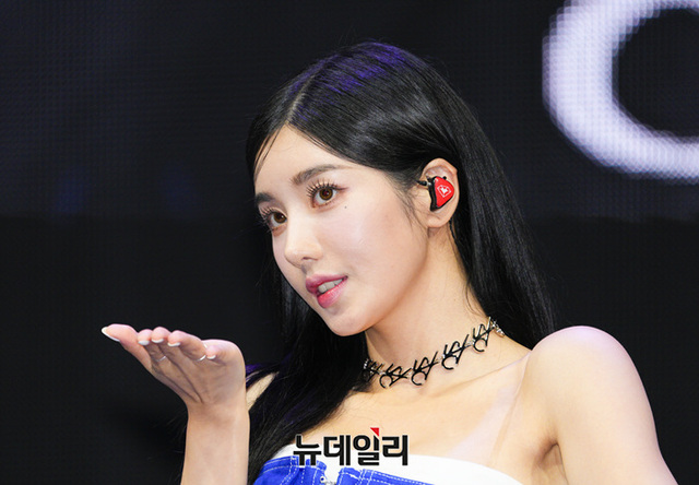 솔로가수 권은비가 2일 오후 서울 용산구 블루스퀘어에서 열린 첫 번째 싱글 '더 플래시(The Flash)' 발매 기념 쇼케이스에서 포토타임을 갖고 있다.