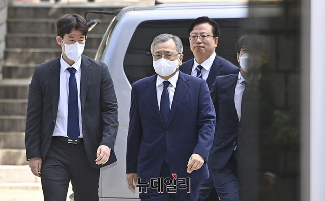 박영수 전 특별검사가 3일 오전 서울 서초구 중앙지법으로 구속 전 피의자 심문(영장심사)를 받기 위해 입장하고 있다.