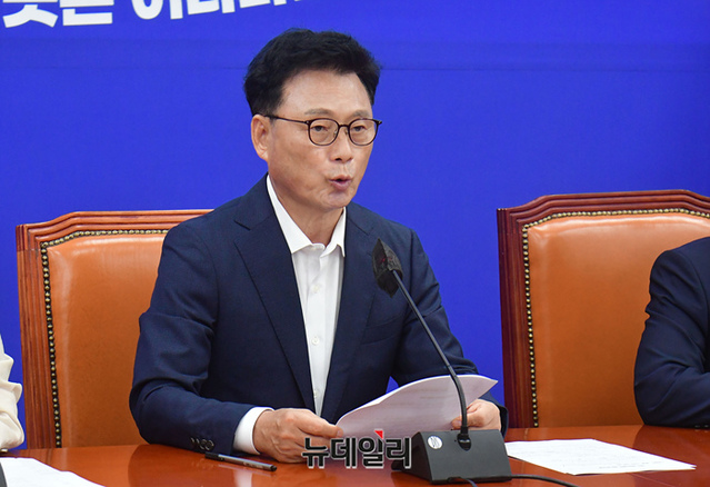 박광온 더불어민주당 원내대표가 3일 오전 국회에서 열린 정책조정회의에서 모두발언을 하고 있다.