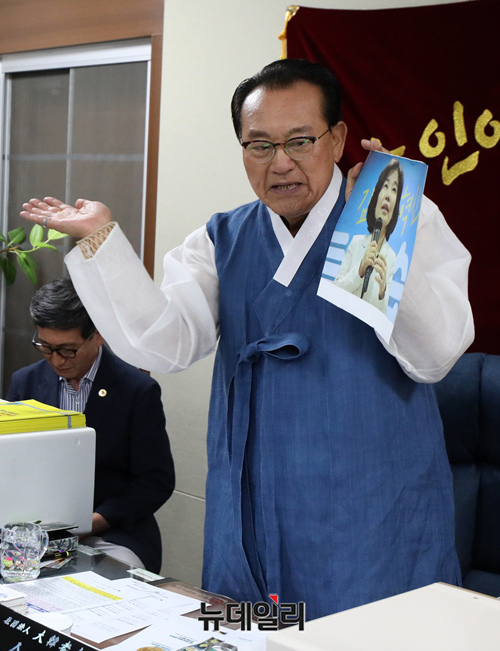 [포토] 김은경 망언 사과, 사진 때리는 김호일 회장