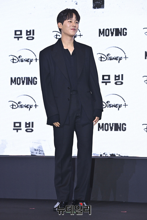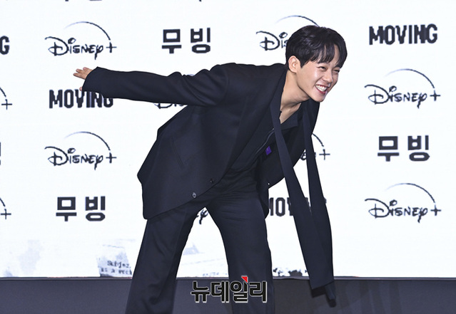 배우 이정하가 3일 오후 서울 강남구 그랜드 인터컨티넨탈 서울 파르나스에서 열린 디즈니+ 드라마 '무빙' 제작발표회에서 포토타임을 갖고 있다.