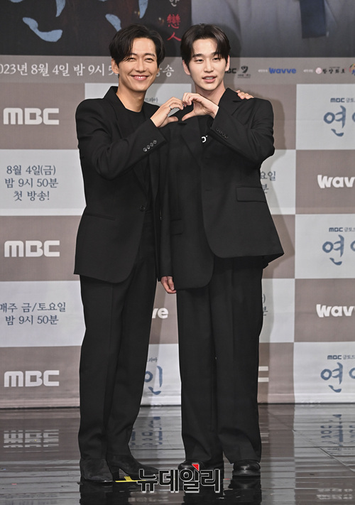 배우 남궁민과 김윤우가 4일 오후 서울 마포구 상암MBC에서 열린 MBC 금토드라마 '연인(연출 김성용, 천수진)' 제작발표회에서 포토타임을 갖고 있다.
