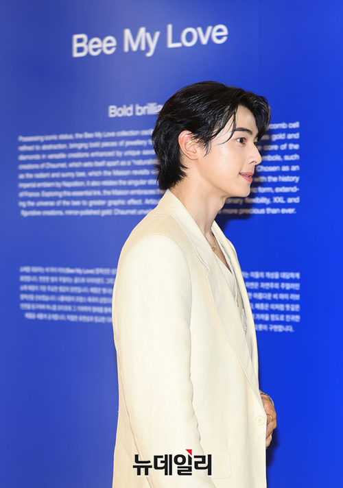 배우 차은우가 5일 오전 서울 신세계백화점 강남점에서 열린 쇼메(CHAUMET) 아이코닉 비 마이 러브 컬렉션 팝업 오픈행사에 입장하고 있다. 이번 팝업에는 비 마이 러브 컬렉션 신제품을 가장 먼저 만나볼 수 있다. 15일까지 오픈.