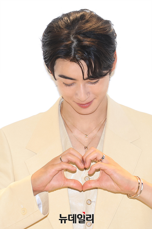 배우 차은우가 5일 오전 서울 신세계백화점 강남점에서 열린 쇼메(CHAUMET) 아이코닉 비 마이 러브 컬렉션 팝업 오픈행사에장서 포즈를 취하고 있다. 이번 팝업에는 비 마이 러브 컬렉션 신제품을 가장 먼저 만나볼 수 있다. 15일까지 오픈.