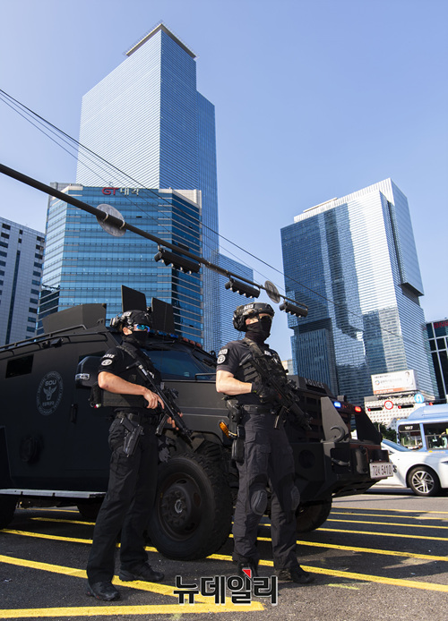 지난 4일 특별치안활동을 선포한 경찰은 살인 예고 지역과 인파가 몰리는 지하철역, 백화점 등에 경찰특공대와 전술장갑차를 배치하고 흉기소지 의심자, 이상행동자에 대해선 선별적 검문검색을 실시한다고 밝혔다.